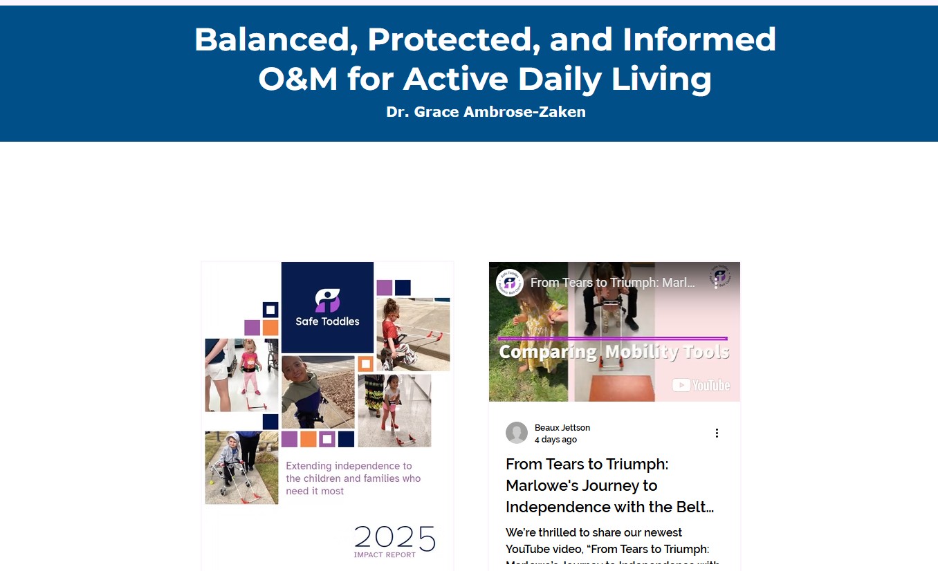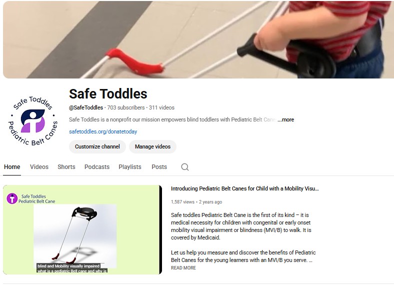 Learn more through our blog and research publications and the hundreds of videos demonstrating children with a mobility visual impairment or blindness' Pediatric Belt Cane outcomes videoed by parents and professionals.