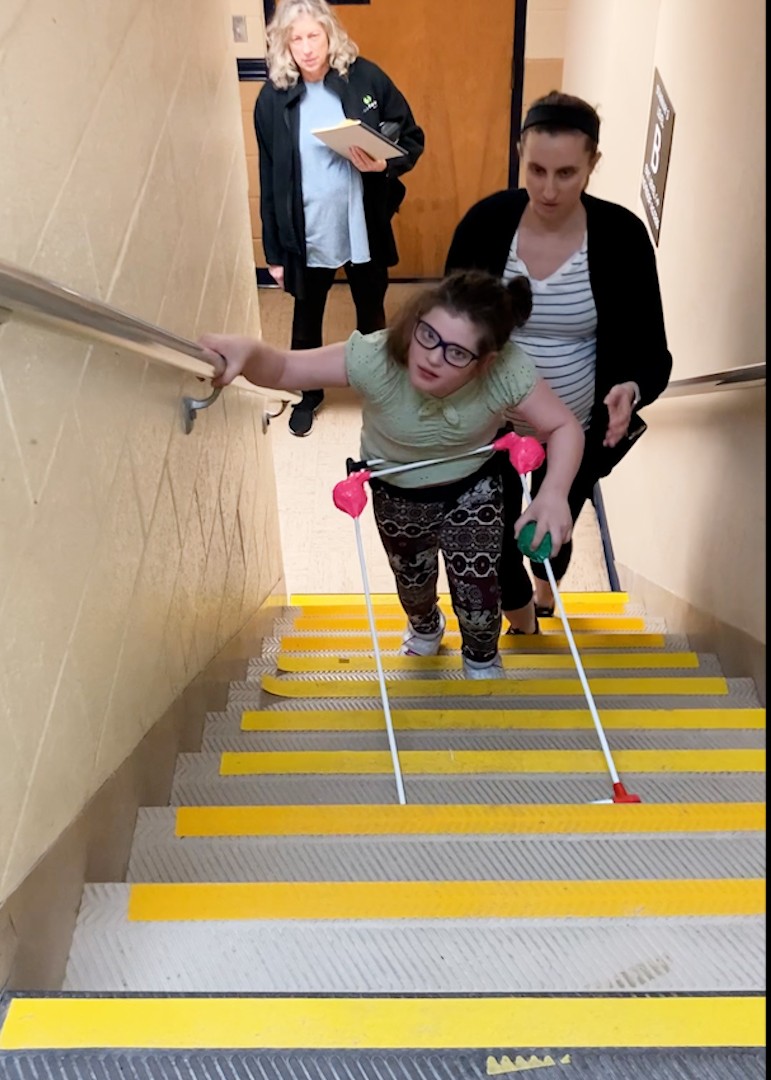 "We've been using the techniques for multiple impairments and our student Judith is now in her second week of school and her mom has not had to send her wheelchair to school yet. She is using her Belt Cane to go from place to place and the school staff say she seems taller."