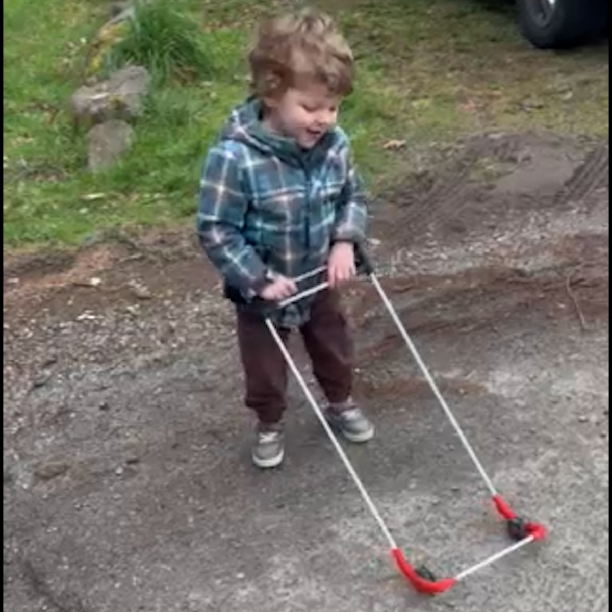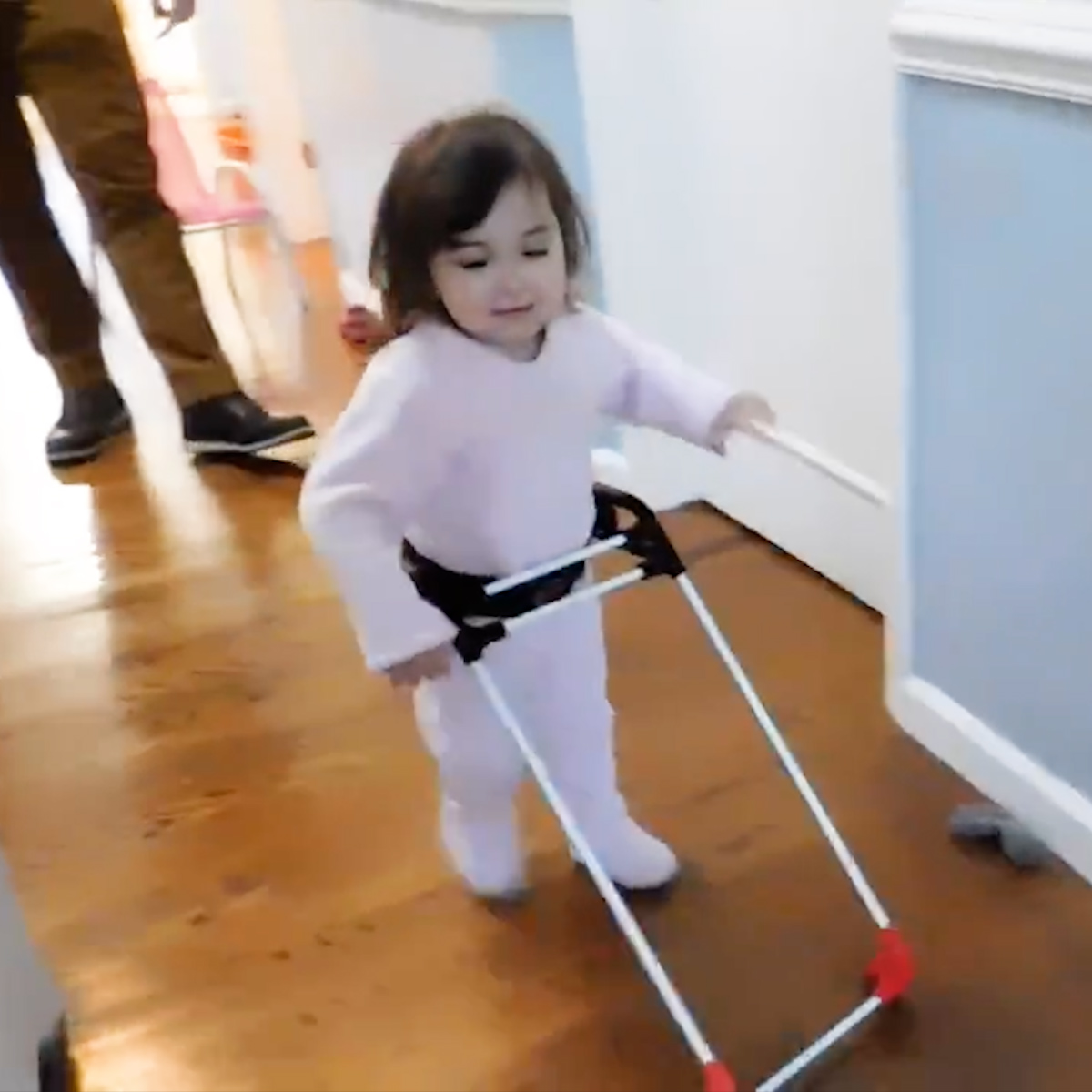 "We finally, finally got our chance to try out our Safe Toddles cane with our little friend after working through the curriculum. The minute I put it on her, she took OFF!"