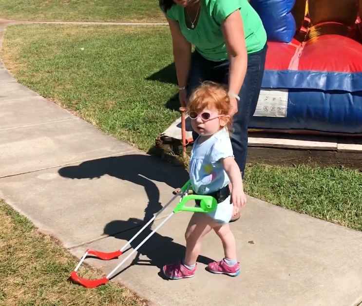 The course teaches play skills for children with a mobility visual impairment or blindness wearing a Pediatric Belt Cane. Activities focus on how to teach play skills, concepts, and language through silly and formal games. Video demonstrations included. Earn 7 hours ACVREP CEUs.